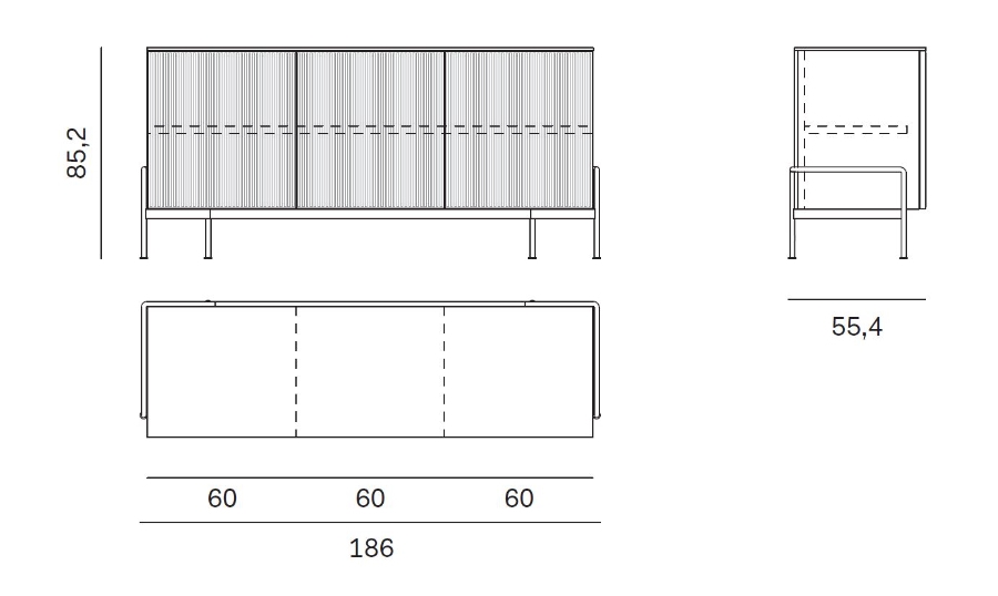 La madia Belt disegnata da Philippe Nigro si presenta in diverse configurazioni ottenute dalla combinazione tra basamento in metallo e moduli con ante e cassetti. La modularità è il suo punto di forza e permette di creare contenitori adatti a ogni ambiente della casa. Con le ante in vetro Era, Belt si trasforma in un’elegante credenza che lascia intravedere l’interno ed è resa ancora più contemporanea dall’illuminazione a LED.