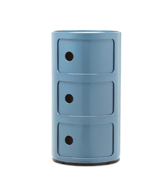 Gli elementi componibili sono stati progettati per rispondere a diverse esigenze d’uso e vivere in ogni ambiente della casa: in bagno, camera da letto, cucina o soggiorno. La soluzione progettuale che anima il sistema Componibili è l’elementare e solida sovrapposizione verticale dei singoli pezzi che, tramite semplice incastro, vanno a comporre dei pratici mobili contenitori. Proposti in forma rotonda e quadrata, i Componibili possono poggiare su rotelle. Flessibili, funzionali, pratici, i Componibili sono in produzione da quarant’anni ed hanno ricevuto molti riconoscimenti per la pregnanza ed innovazione del progetto (sono esposti anche al Museum of Modern Art di New York e al Centre George Pompidou di Parigi).